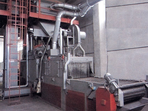 通過拋丸去除工件表面的銹層、焊渣及污物,使之獲得均勻一致的金屬光澤,提高了涂飾質(zhì)量與防腐效果。被清理件以自動、連續(xù)不間斷方式通過拋丸區(qū),接受多個方向的拋丸清理,清理效果好,且有效避免工件相互碰撞而損傷。