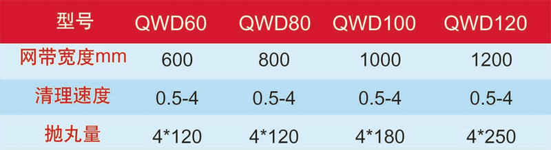 QWD系列網(wǎng)帶式拋丸清理機(jī)主要用于薄壁鑄件、薄壁和脆弱的鐵或鋁合金鑄件、陶瓷等小型零件的表面拋丸清理,亦可用于機(jī)械零件拋丸強(qiáng)化。具有連續(xù)性好,清理效率高,變形小、無地坑等優(yōu)點(diǎn)。